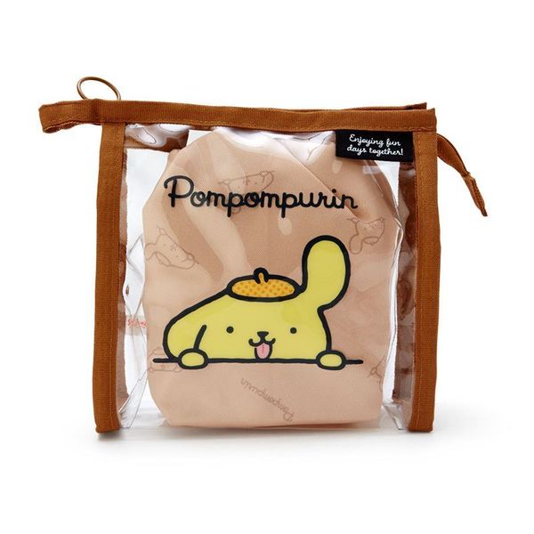 POMPOMPURIN 布甸狗 日版 多功能 透明 化裝袋 收納袋 連 索袋 索繩袋 小物袋 索繩包 抽繩袋 布丁狗 2022年 (簡約系列) 【平行進口】