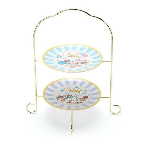 SANRIO-CINNAMOROLL 玉桂狗 日版 雙層 金屬 下午茶架子 連 甜品碟 點心盤子 2021年 皇冠生日系列 大耳狗 喜拿狗 【平行進口】