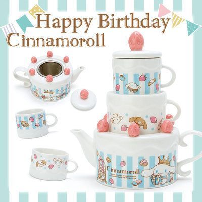 SANRIO-CINNAMOROLL 玉桂狗 日版 蛋糕 造型 陶瓷 茶壺 茶杯 套裝 2021年 皇冠生日系列 大耳狗 喜拿狗 【平行進口】