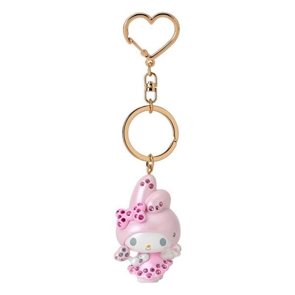 SANRIO-MY MELODY 日版 閃亮 寶石 閃令令 天使 造型 心形 鎖匙扣 鑰匙圈 掛飾 吊飾 美樂蒂 2024年款 【平行進口】