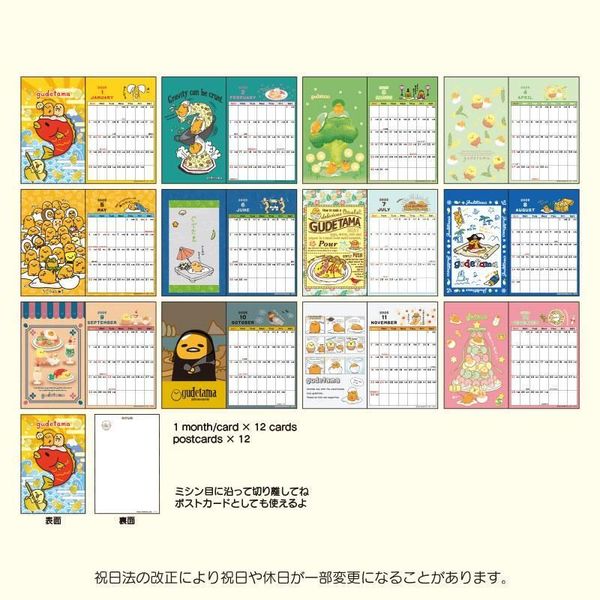 SANRIO-GUDETAMA 蛋黃哥 日版 2025 桌上 明信片 座檯 年曆 行事曆 計劃表 月曆 日曆 工作表 桌曆 梳乎蛋 懶懶蛋 日本假期 (451199) 【平行進口】