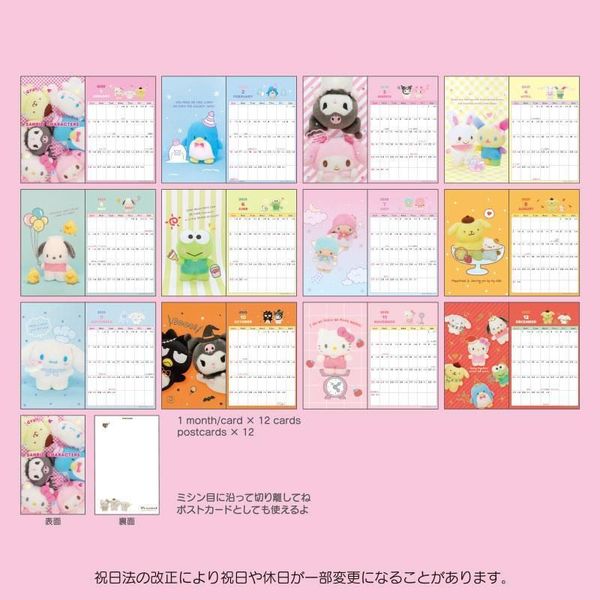SANRIO-SANRIO CHARACTERS 日版 2025 桌上 明信片 座檯 年曆 行事曆 計劃表 月曆 日曆 工作表 桌曆 日本假期 (451229) 【平行進口】