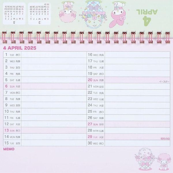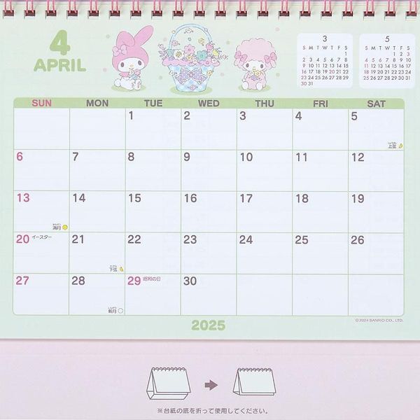SANRIO-MY MELODY 日版 2025 桌上 座檯 年曆 行事曆 計劃表 月曆 日曆 工作表 桌曆 附貼紙 美樂蒂 日本假期 (451267) 【平行進口】
