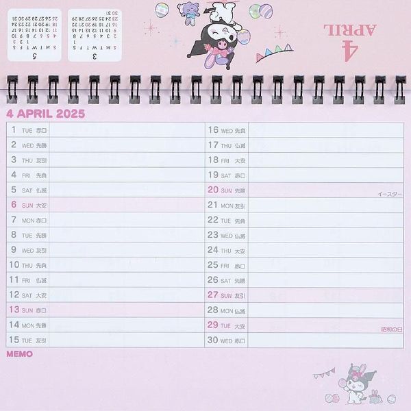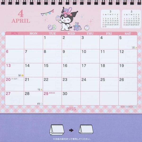 SANRIO-KUROMI 日版 2025 桌上 座檯 年曆 行事曆 計劃表 月曆 日曆 工作表 桌曆 附貼紙 酷洛米 庫洛米 可羅米 日本假期 (451366) 【平行進口】