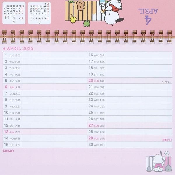 SANRIO-POCHACCO PC狗 日版 2025 桌上 座檯 年曆 行事曆 計劃表 月曆 日曆 工作表 桌曆 附貼紙 帕恰狗 日本假期 (451373) 【平行進口】