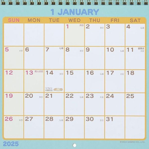 SANRIO-CINNAMOROLL 玉桂狗 日版 2025 壁掛 月曆 行事曆 掛牆 日曆 年曆 M SIZE 家居 大耳狗 喜拿狗 日本假期 (452547) 【平行進口】