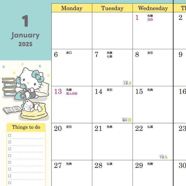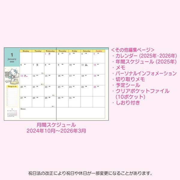 SANRIO-HELLO KITTY 日版 2025 A5 月間 手帳 SCHEDULE BOOK 年曆 行事曆 備忘錄 月曆 日曆 附貼紙 凱蒂貓 吉蒂貓 日本假期 (454725) 【平行進口】
