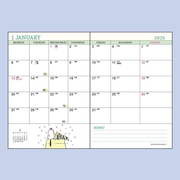 PEANUTS SNOOPY 史努比 日版 2025 橫紋款 B6 日記 手帳 SCHEDULE BOOK DATEBOOK 年曆 行事曆 備忘錄 月曆 附貼紙 日本假期 (456125) 平行進口