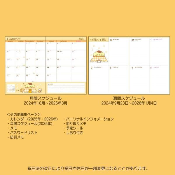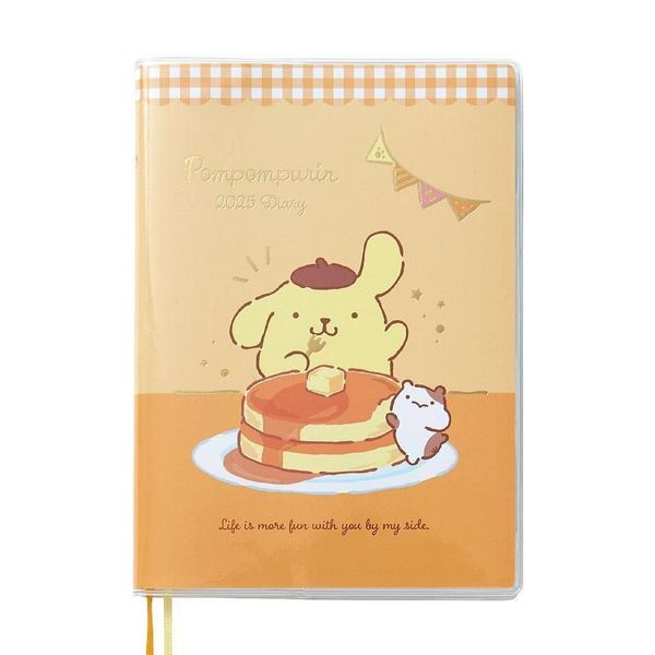 SANRIO-POMPOMPURIN 布甸狗 日版 2025 方格款 B6 日記 手帳 SCHEDULE BOOK DATEBOOK 行事曆 備忘錄 月曆 附貼紙 日本假期 (456330) 平行進口