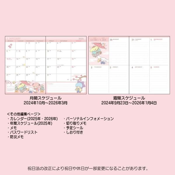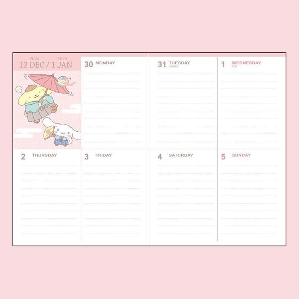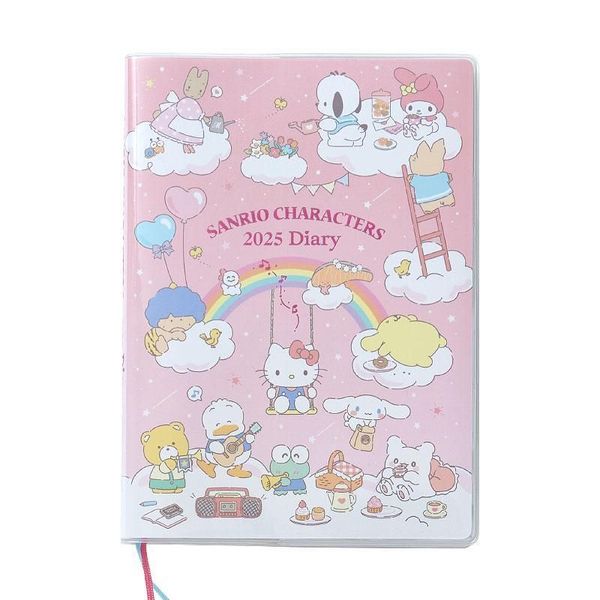 SANRIO-SANRIO CHARACTERS 日版 2025 方格款 B6 日記 手帳 SCHEDULE BOOK DATEBOOK 行事曆 備忘錄 月曆 附貼紙 日本假期(457627)平行進口