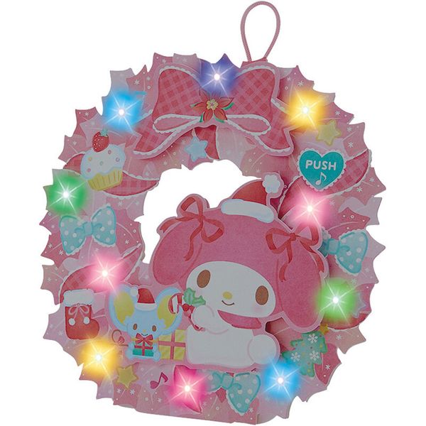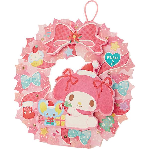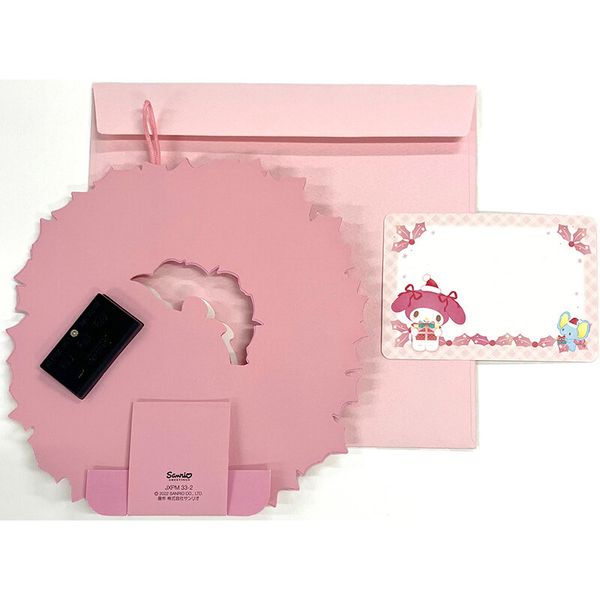 MY MELODY 日版 花環 造型 花圈 音樂 聖誕卡 發光 閃燈 聖誕咭 美樂蒂 (2022聖誕系列) 【平行進口】