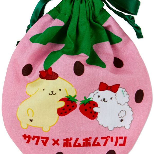 POMPOMPURIN 布甸狗 日版 棉質 索袋 索繩袋 收納袋 小物袋 布丁狗 2021 (草莓造型) 【平行進口】