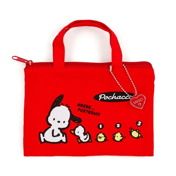 SANRIO-POCHACCO PC狗 日版 手提 扁平 收納袋 扁身 化妝袋 儲物袋 文具袋 工具袋 1970年代系列 帕恰狗 【平行進口】