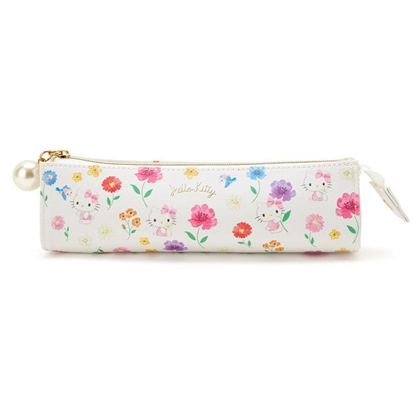 HELLO KITTY 日版 文具 仿皮 拉鍊 筆袋 收納袋 儲物袋 珍珠掛飾 凱蒂貓 2022年 (遠程生活支援系列) 【平行進口】