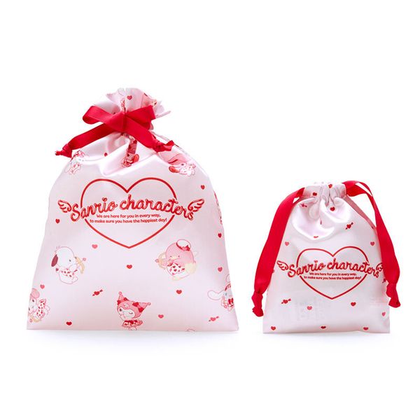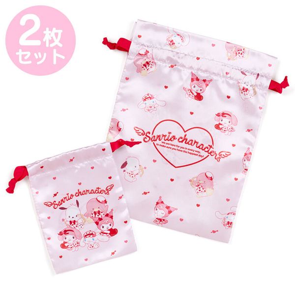 SANRIO CHARACTERS 日版 索袋 索繩袋 抽繩袋 小物袋 收納袋 套裝 一套兩個 MELODY PC狗 KUROMI TUXEDOSAM 2022 (愛神丘比特系列) 【平行進口】