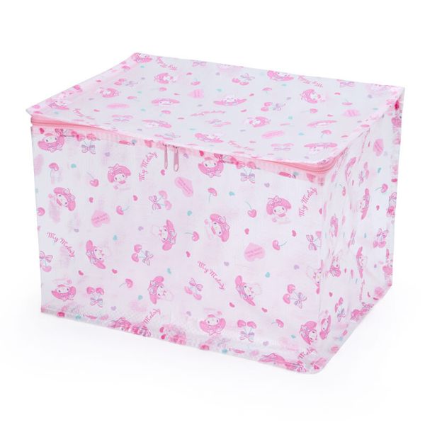 MY MELODY 日版 大容量 半透明 塑膠 可摺疊 拉鍊 收納箱 儲物箱 雜物箱 衣物箱 收納盒 儲物盒 雜物盒 M SIZE 美樂蒂 (2021年款) 【平行進口】