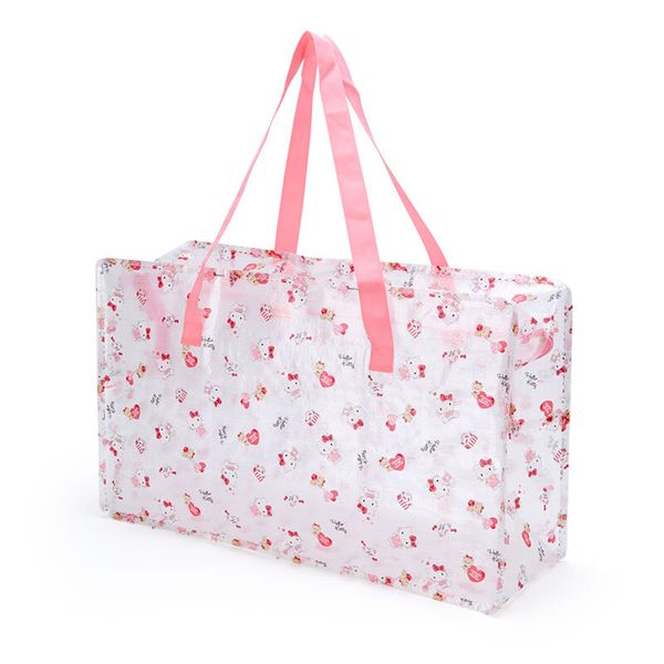 HELLO KITTY 日版 大容量 半透明 塑膠 手提袋 收納袋 手挽袋 儲物袋 雜物袋 L SIZE 凱蒂貓 (2021年款) 【平行進口】