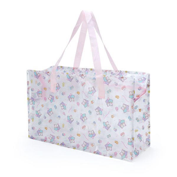 LITTLE TWIN STARS 日版 大容量 半透明 塑膠 手提袋 收納袋 手挽袋 儲物袋 雜物袋 L SIZE KIKI LALA 雙子星 雙星仙子 (2021年款) 【平行進口】