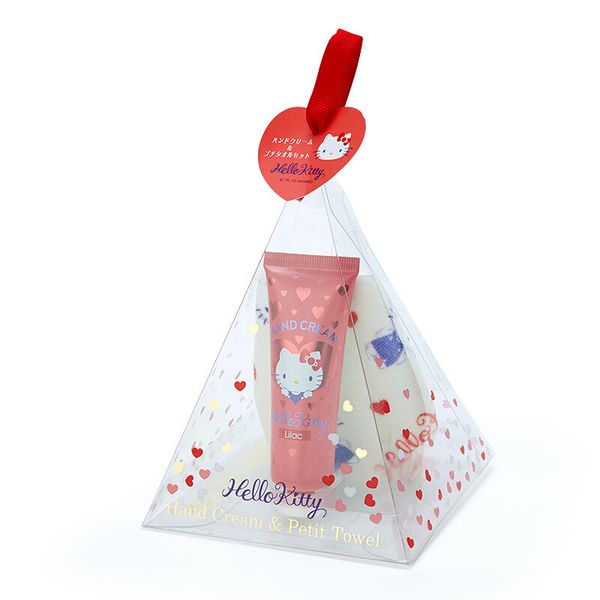 HELLO KITTY 日版 潤手霜 & 毛巾 套裝 100%棉 保濕 滋潤 護手霜 手巾 方巾 (紫丁香) 【平行進口】