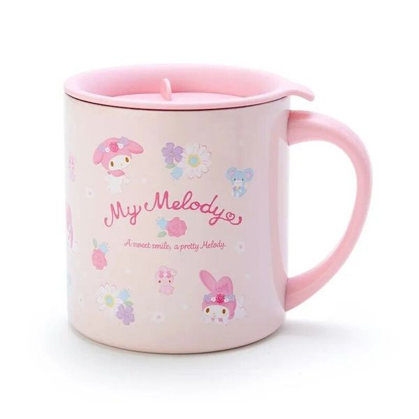 MY MELODY 日版 家居 單耳不鏽鋼杯 馬克杯 咖啡杯 附蓋 保溫冷暖兩用 美樂蒂 【平行進口】
