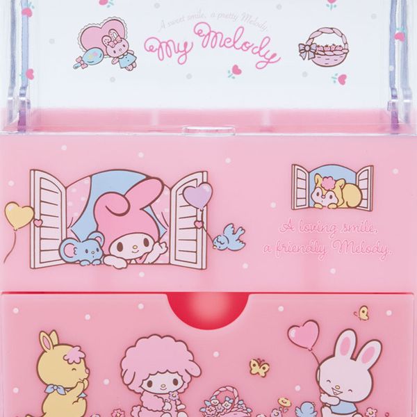 MY MELODY 日版 化妝品 飾物 小物 滑動式 揭蓋 抽屜 收納盒 飾品 小櫃桶 收納箱 美樂蒂 2022年款 【平行進口】