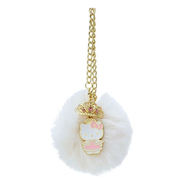 SANRIO-HELLO KITTY 日版 毛毛球造型 皇冠 金屬 掛飾 吊飾 匙扣 鑰匙鍊 包包 裝飾 凱蒂貓 吉蒂貓 2023年款 【平行進口】