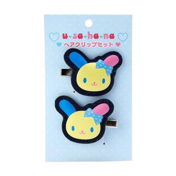 SANRIO-USAHANA 日版 牛仔布 髮夾 兩個裝 髮飾 頭飾 精緻 可愛 套裝 花小兔 彩耳兔 2024 (平成絲帶設計系列) 【平行進口】