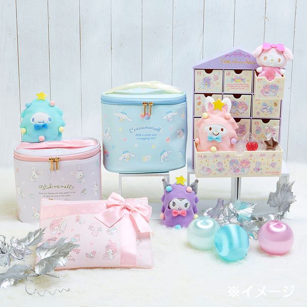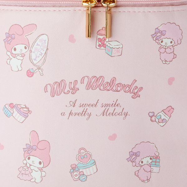 MY MELODY 日版 雙拉鍊 手提 化妝袋 便攜 PU皮革 收納袋 儲物袋 美樂蒂 (2021聖誕糖果系列) 【平行進口】