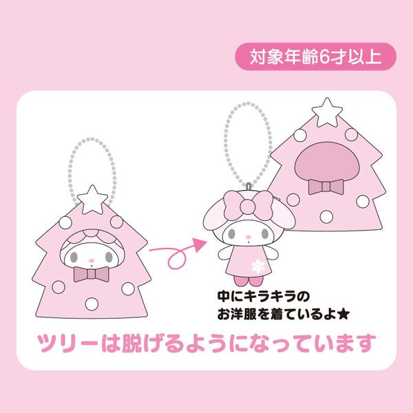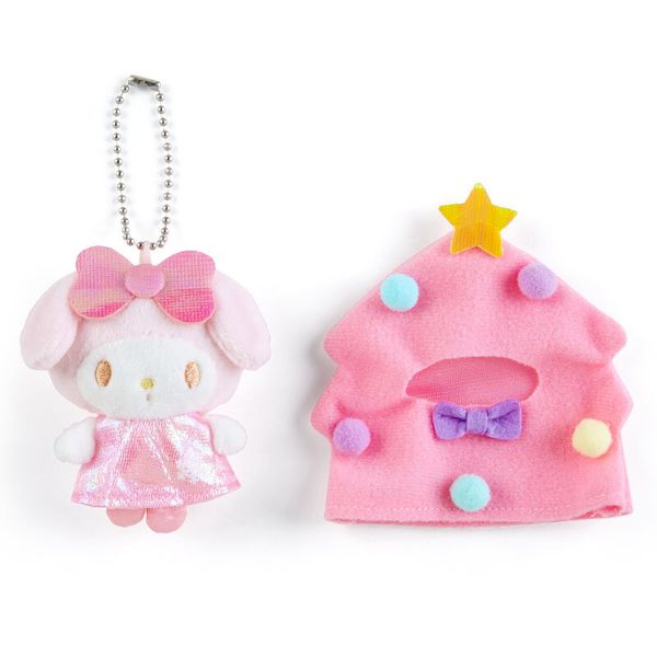 MY MELODY 日版 聖誕樹 套頭 裝飾 造型 迷你 公仔 鑰匙鍊 毛公仔 吊飾 鎖匙鍊 鎖匙扣 美樂蒂 (2021聖誕糖果系列) 【平行進口】