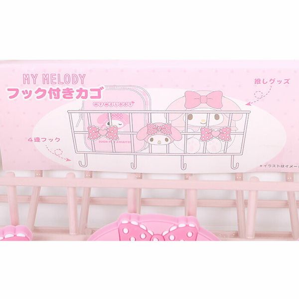 MY MELODY 日版 長方形 收納架 收納籃 置物架 帶4掛鉤 美樂蒂 (線架收納系列) 【平行進口】