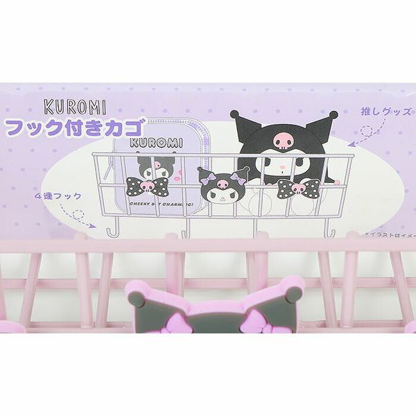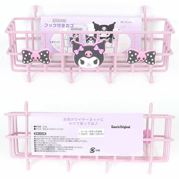 KUROMI 日版 長方形 收納架 收納籃 置物架 帶4掛鉤 酷洛米 庫洛米 可羅米 (線架收納系列) 【平行進口】