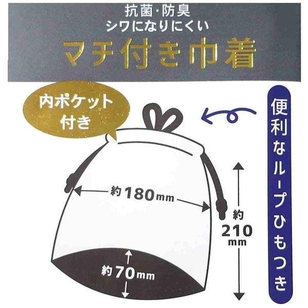 こちらは定番アイテム【マチ付き巾着袋】