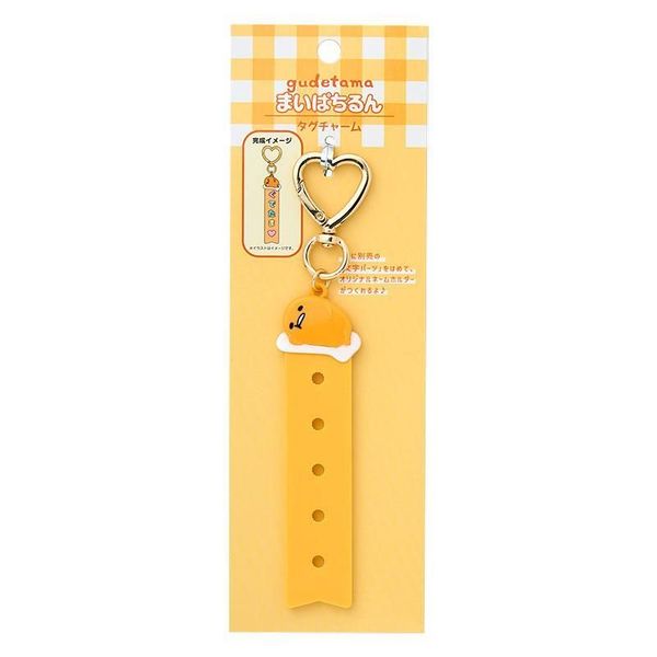 SANRIO-GUDETAMA 蛋黃哥 日版 可串字 標籤 心形 鎖匙扣 鑰匙圈 吊飾 掛件 2025 我的PACHIRUN系列 梳乎蛋 懶懶蛋 【平行進口】