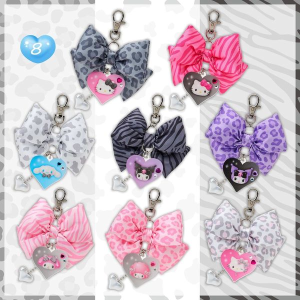 SANRIO-HELLO KITTY 日版 蝴蝶結 心形 鎖匙扣 鑰匙圈 吊飾 掛件 2025年 動物紋樣系列 凱蒂貓 吉蒂貓 (灰)【平行進口】