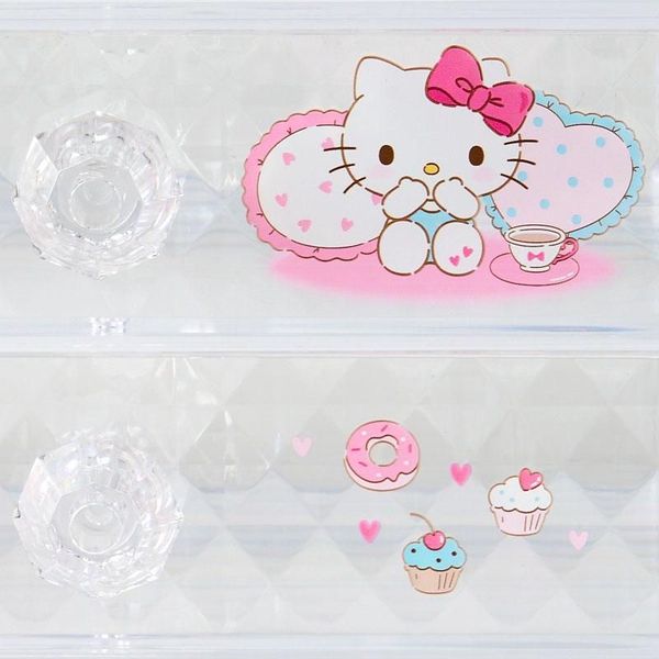 SANRIO-HELLO KITTY 日版 可組合式 透明 雙層 抽屜 收納盒 首飾 化妝品 護膚品 2025年 桌上收納系列 凱蒂貓 吉蒂貓【平行進口】