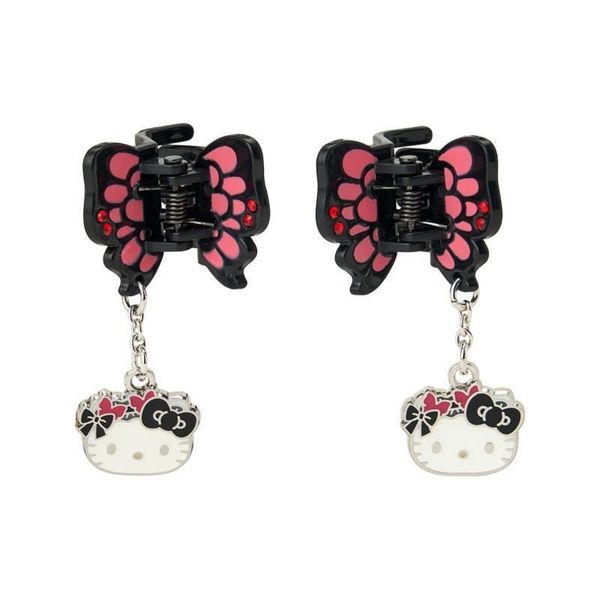 SANRIO-HELLO KITTY 日版 蝴蝶造型 細髮爪夾 髮夾 小抓夾 瀏海夾 頭飾 髮飾 2個裝 2025年 黑色蝴蝶系列 凱蒂貓 吉蒂貓【平行進口】