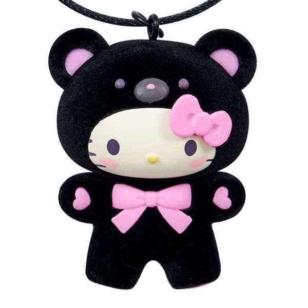 SANRIO-HELLO KITTY 日版 PVC 植絨公仔 鎖匙扣 鑰匙圈 掛件 吊飾 2025年 粉紅絲帶小黑熊系列 凱蒂貓 吉蒂貓【平行進口】