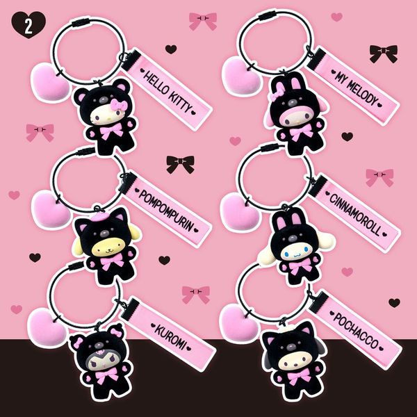 SANRIO-POMPOMPURIN 布甸狗 日版 PVC 植絨公仔 鎖匙扣 鑰匙圈 掛件 吊飾 2025年 粉紅絲帶小黑熊系列 布丁狗【平行進口】