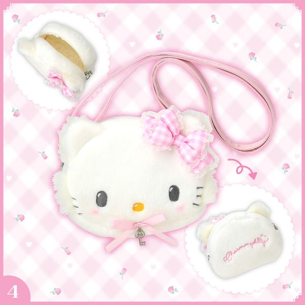 CHARMMY KITTY 日版 大頭 臉部 造型 毛絨 斜揹袋 毛茸茸 斜挎包 側揹袋 2025年 我的寶貝CHARMMYKITTY粉紅格仔系列【平行進口】