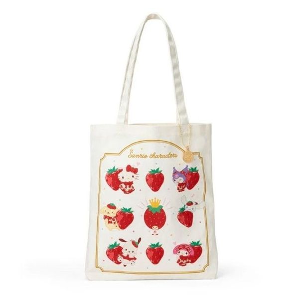 SANRIO-SANRIO CHARACTERS 日版 50週年 棉質 手挽袋 手提袋 布袋 單肩包 側揹袋 肩背包 2025年 草莓新聞系列 【平行進口】