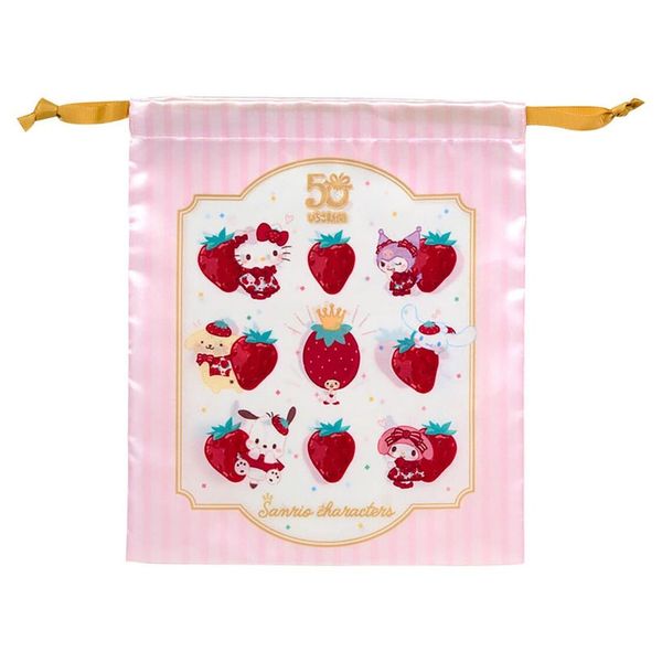 SANRIO-SANRIO CHARACTERS 日版 50週年 收納袋 2個裝 索袋 索繩袋 儲物袋 抽繩包 2025年 草莓新聞系列 【平行進口】