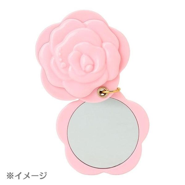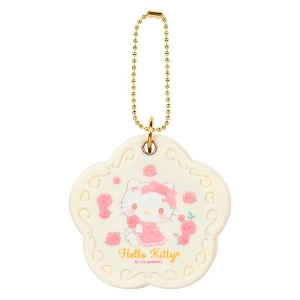SANRIO-HELLO KITTY 日版 玫瑰花造型 迷你 鏡子 鎖匙扣 鑰匙鍊 掛件 吊飾 凱蒂貓 吉蒂貓 2024年 (多莉玫瑰系列) (米黃) 【平行進口】