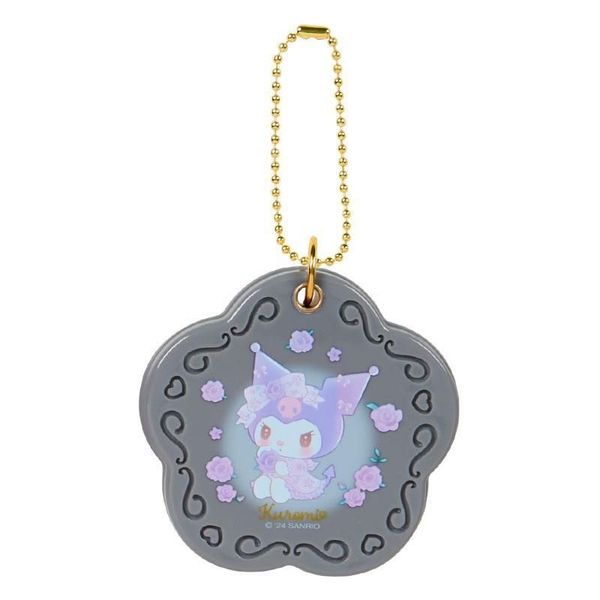 SANRIO-KUROMI 日版 玫瑰花造型 迷你 鏡子 鎖匙扣 鑰匙鍊 掛件 吊飾 酷洛米 庫洛米 可羅米 2024年 (多莉玫瑰系列) (黑色) 【平行進口】