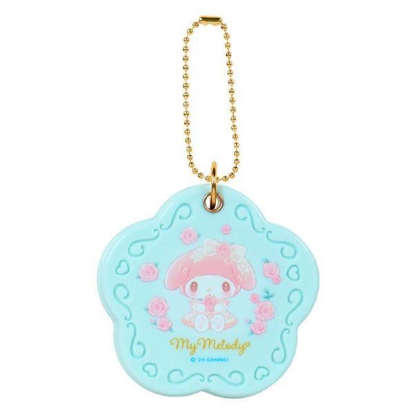 SANRIO-MY MELODY 日版 玫瑰花造型 迷你 鏡子 鎖匙扣 鑰匙鍊 掛件 吊飾 美樂蒂 2024年 (多莉玫瑰系列) (天藍) 【平行進口】
