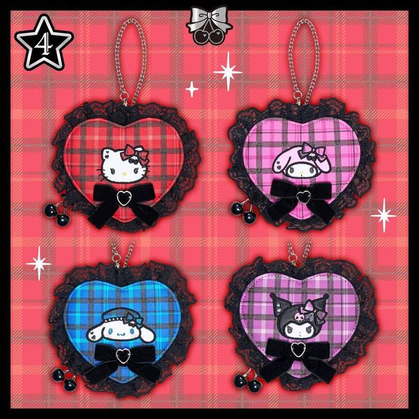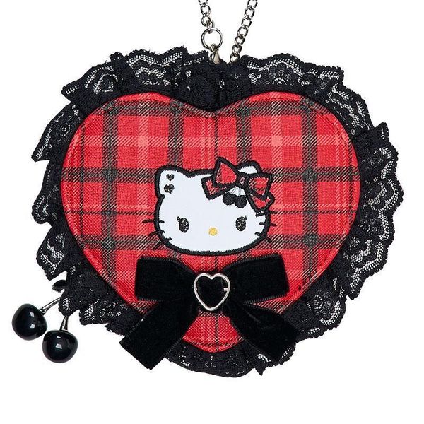 SANRIO-HELLO KITTY 日版 多用途 心形 小物 收納袋 配件 儲物袋 鑰匙鍊 鎖匙扣 掛件 吊飾 2025年 搖滾風格系列 凱蒂貓 吉蒂貓【平行進口】