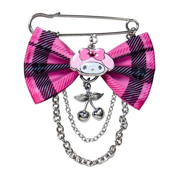 SANRIO-MY MELODY 日版 格仔蝴蝶結 扣針 別針 襟針 配飾 手袋 包包 裝飾 2025年 搖滾風格系列 美樂蒂【平行進口】