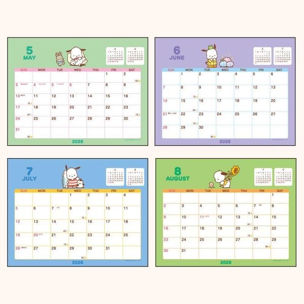 SANRIO-POCHACCO PC狗 日版 2026 家居 桌上 座檯 行事曆 計劃表 月曆 年曆 日曆 附貼紙 日本假期 帕恰狗 (622172) 【平行進口】
