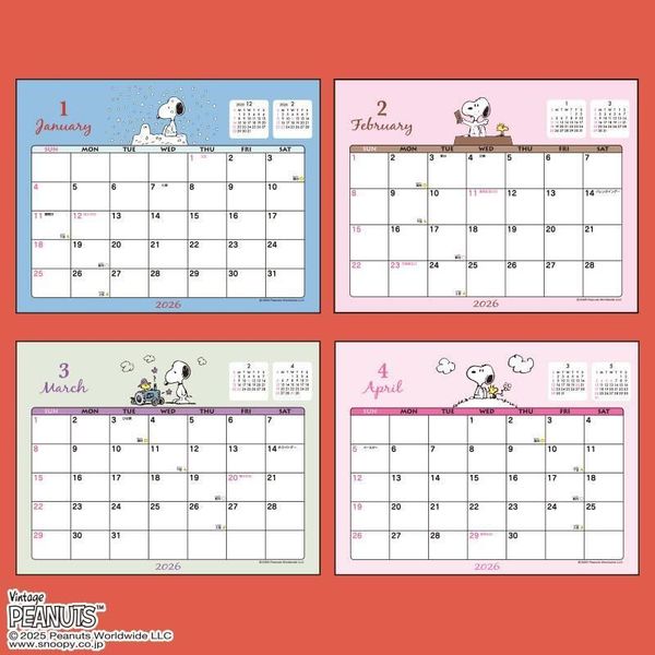 SANRIO-PEANUTS SNOOPY 史努比 日版 2026 家居 桌上 座檯 行事曆 計劃表 月曆 年曆 日曆 附貼紙 日本假期 史奴比 史諾比 (622226) 【平行進口】