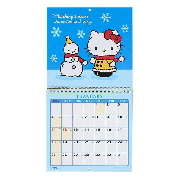 SANRIO-HELLO KITTY 日版 2026 壁掛 月曆 行事曆 掛牆 日曆 年曆 M SIZE 中號 日本假期 凱蒂貓 吉蒂貓 (622448) 【平行進口】