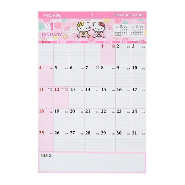 SANRIO-HELLO KITTY 日版 2026 特大號 壁掛 掛牆 月曆 行事曆 日曆 年曆 家居 凱蒂貓 吉蒂貓 (622776) 【平行進口】